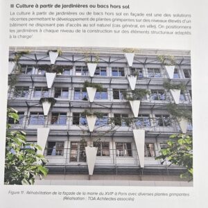 Réhabilitation de la façade de la Mairie du XVIIe à Paris avec diverses plantes grimpantes.