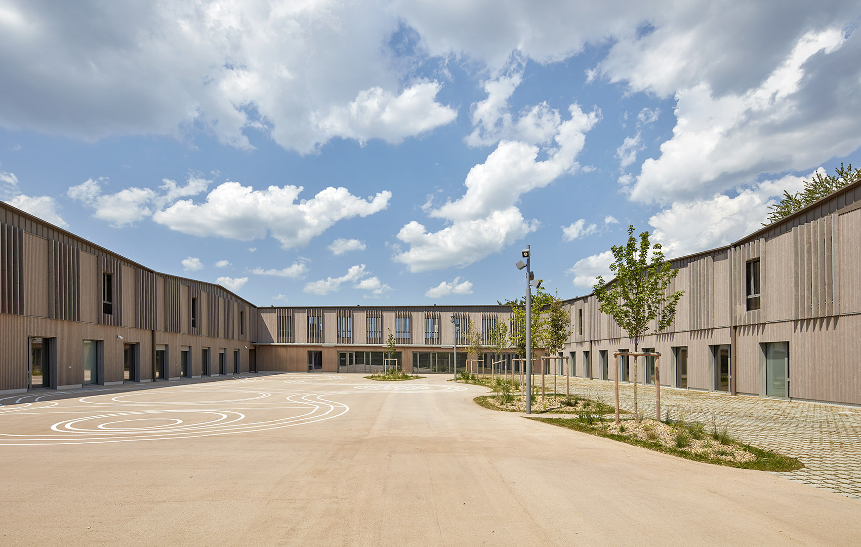 Le groupe scolaire Simone Veil illustre une démarche réussie de construction hors-site durable et innovante. Réalisé en modulaire 2D bois, il conjugue rapidité d’exécution, haute performance environnementale (E3C2, HQE, Effinergie 2017, Bâtiment biosourcé) et qualité architecturale.